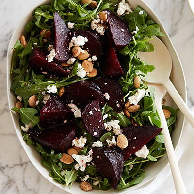 The secret to flavorful beets? Dress them with vinaigrette while they’re still warm— they’ll absorb more of the dressing that way.