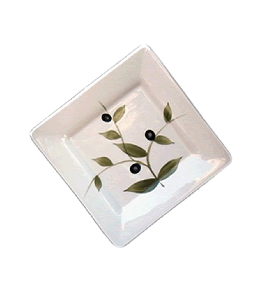 Tidbit plate perfect for individual place settings. White with olive imprinted.