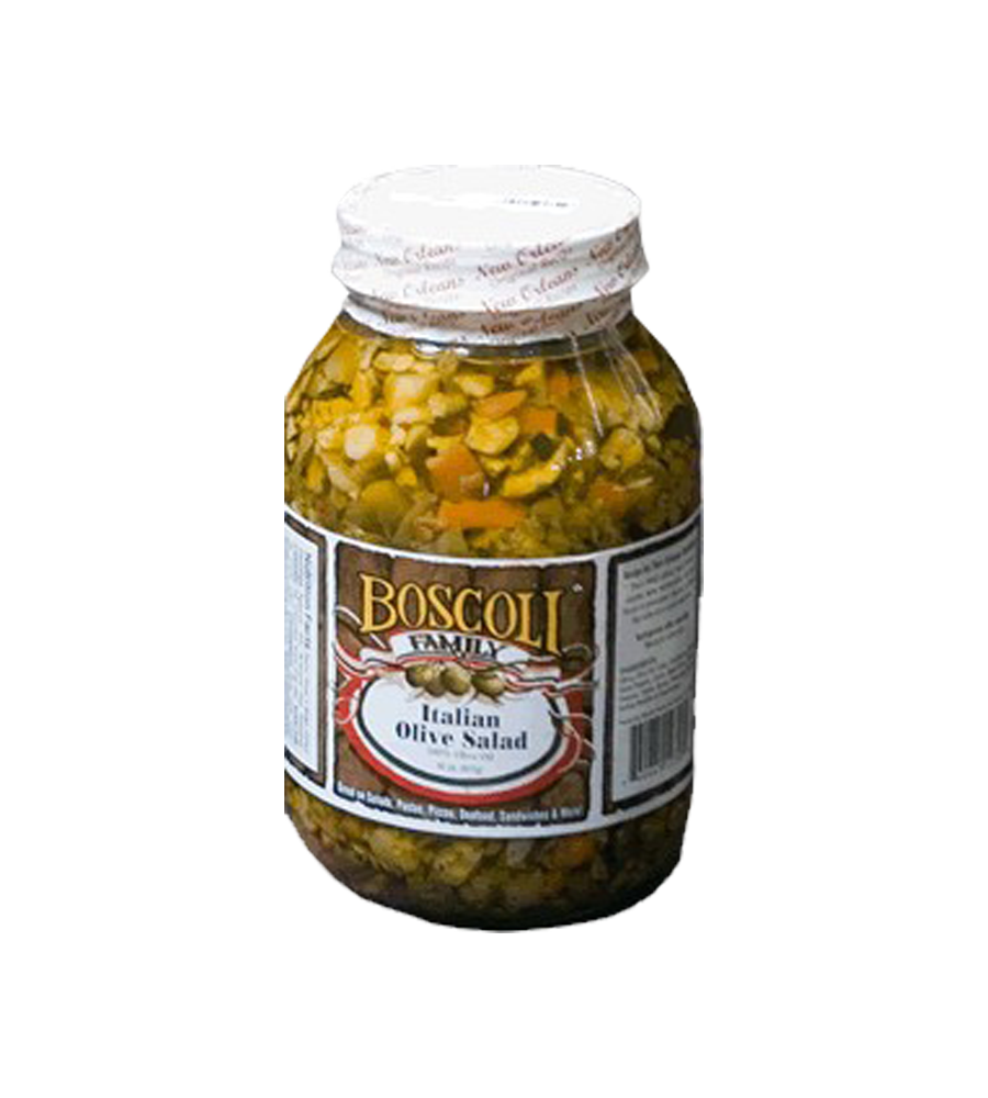 Chopped olive and vegetable salad from the Boscoli family in New Orleans. Great for Muffaletta’s! 16 oz. jar